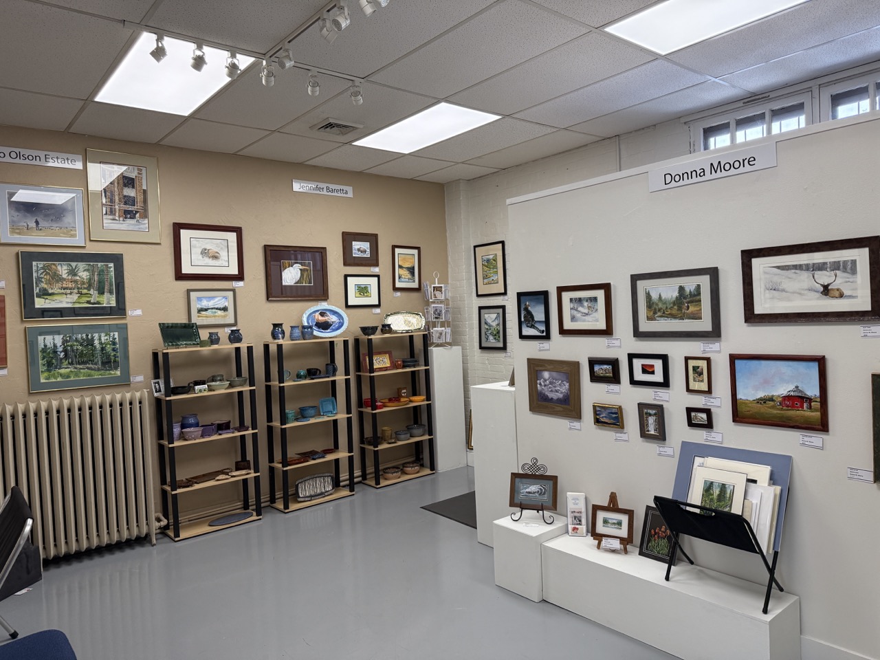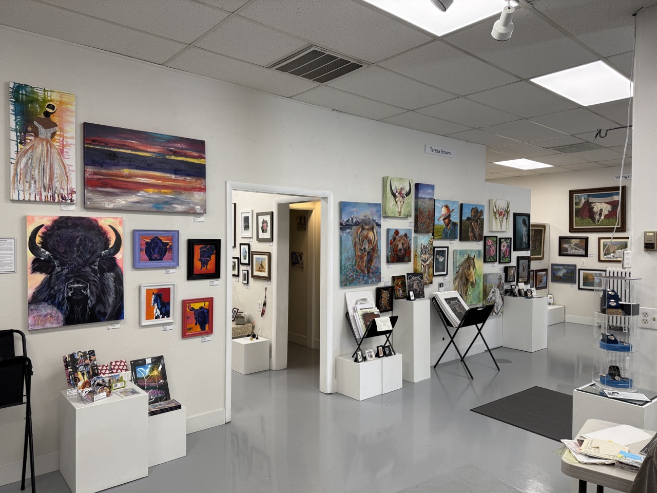 The gallery currently features 17 artists: Jennifer Baretta, Lana Bittner, Teresa Brown, Dick Cottrill, Christine and Ken Denning, Mary Hopper, Peter Herzog, John Kennedy, Susan Martinez, Donna Moore, the Leo Olson Estate, John Roberts, Lynn Shield, and the Billings Arts Association. We are thrilled to welcome our two newest members: Cecil Pegram and Charlene Wilson.