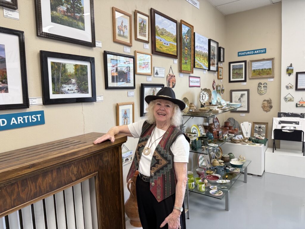 Each artist maintains a personal display area within the gallery. Every other month, during ArtWalk, two members are featured. This October, Susan Martinez will showcase her stunning acrylic paintings, while Lynn Shield will exhibit her dynamic Brusho watercolor works, and we will showcase art and pottery from the Leo Olson Estate. The Billings Arts Association artists for this round are Kassi Strong and Jean Posusta.