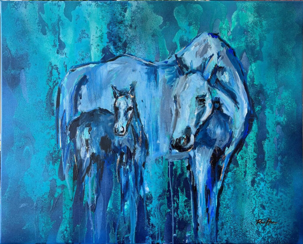 In contrast, Ruby’s wildlife paintings are thought to evoke a different emotion. Over the pandemic, Ruby was unable access her studio where she was creating her abstract work. Confined to her home, she had a few small canvases and some leftover acrylic paint. Ruby found herself getting lost in the process of translating her painting style into the subject matter of loose and expressive wildlife. . She enjoys the challenge of working with these painting techniques that simultaneously explore the duality and similarity of her evolving styles.
