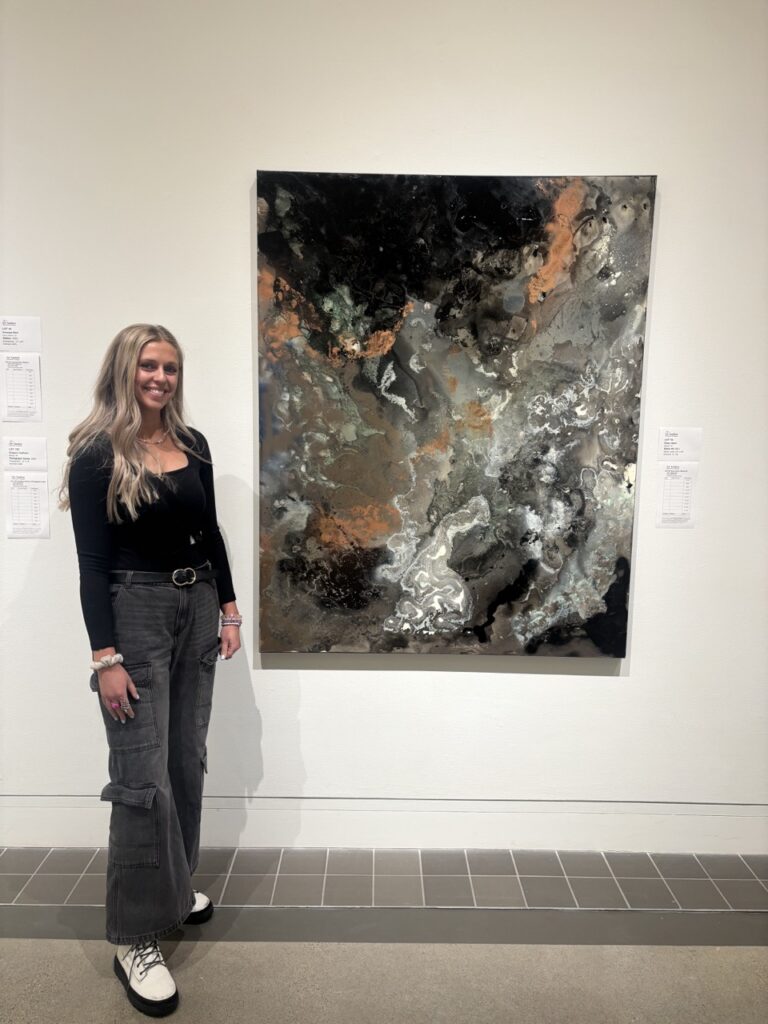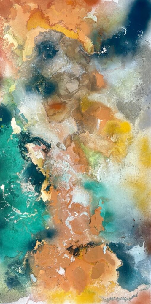 We are very excited to feature guest artist Ruby Hahn, known for her striking acrylic and mixed-media artworks. Ruby creates large-scale, statement pieces using self-made fluid acrylics combined with a variety of mixed media. Her work explores the subtle, often unnoticed relationships in the natural world, offering a personal and interpretive lens on nature’s hidden connections. Her bold compositions and organic textures invite viewers to look closer—and feel deeper.
