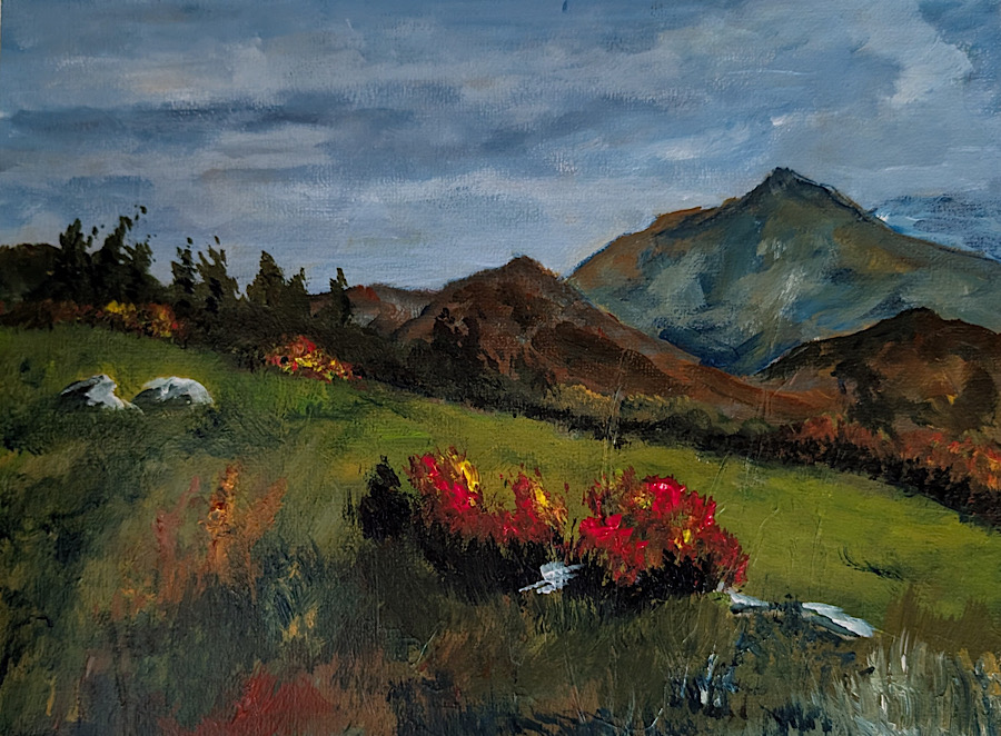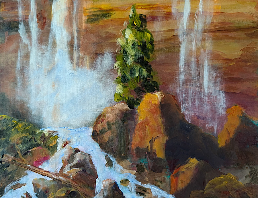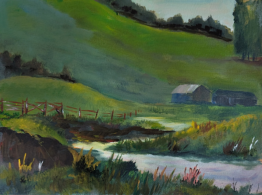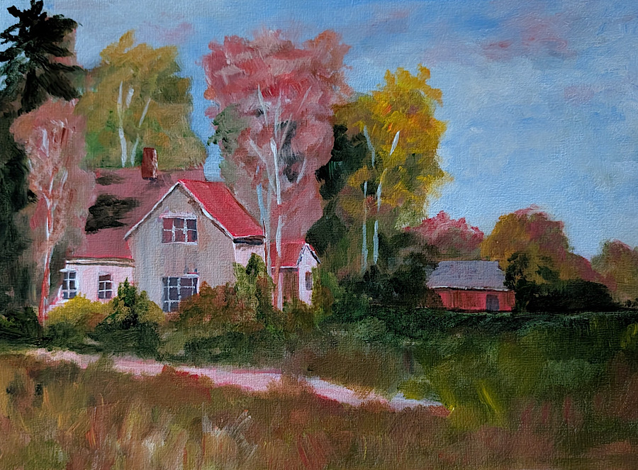 Then, in February of 2021, John suffered a stroke. After a complete and successful recovery, he realized his reaction time and focus was not what it once was. He discontinued woodworking and became interested in painting landscapes. (Very difficult to cut off your fingers with a paint brush though maybe an ear might be in the realm of possibility.) He bought some paints, watched them carefully for a couple of months, and then, on September 16th, 2021, cranked up YouTube and cranked out his first painting. He decided to do 100 paintings, then 500, and so it continued. He took classes from local artists; read a whole bunch of books; did 10 studies of Vermeer’s “Girl with a Pearl Earring”; painted 14 pictures in one day. To date, he has painted over 1000 paintings.